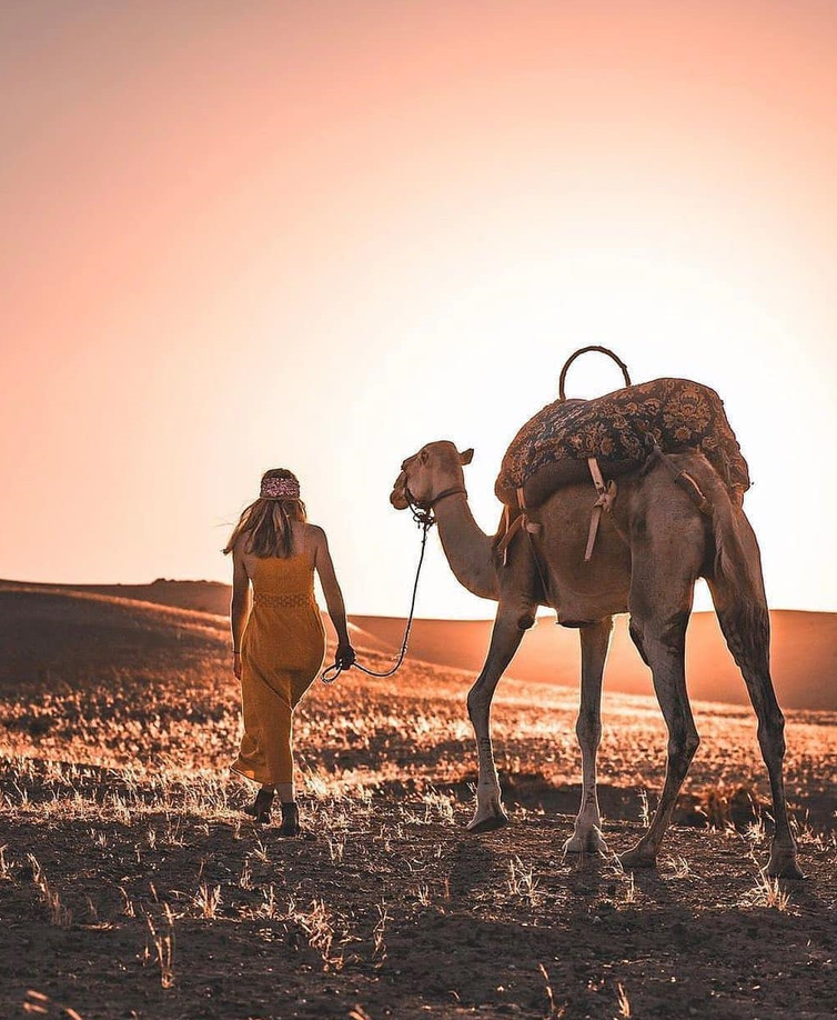 Enjoy an Agafay camel ride at sunset, a Berber dinner show & live performances. Best camel ride Marrakech experience — 7 hours, hotel pickup included. Book now!